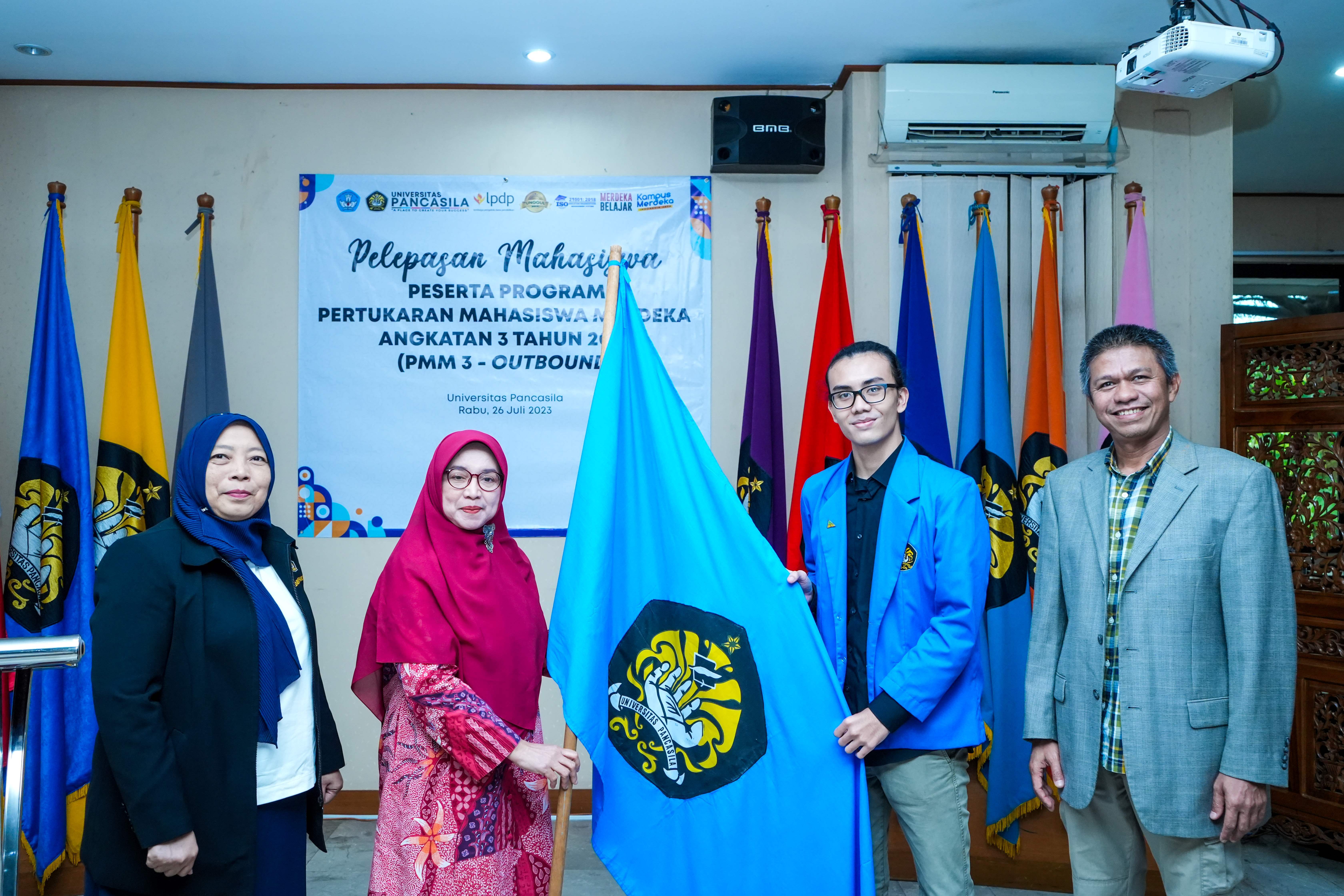 Pada hari Rabu (26/07/2023), Universitas Pancasila melaksanakan acara Pelepasan Mahasiswa Program Pertukaran Mahasiswa Merdeka Angkatan ke 3 (PMM 3) Outbound Tahun 2023 yang berasal dari Program Studi Teknik Informatika, Arsitektur, Ilmu Komunikasi dan Sarjana Manajemen.